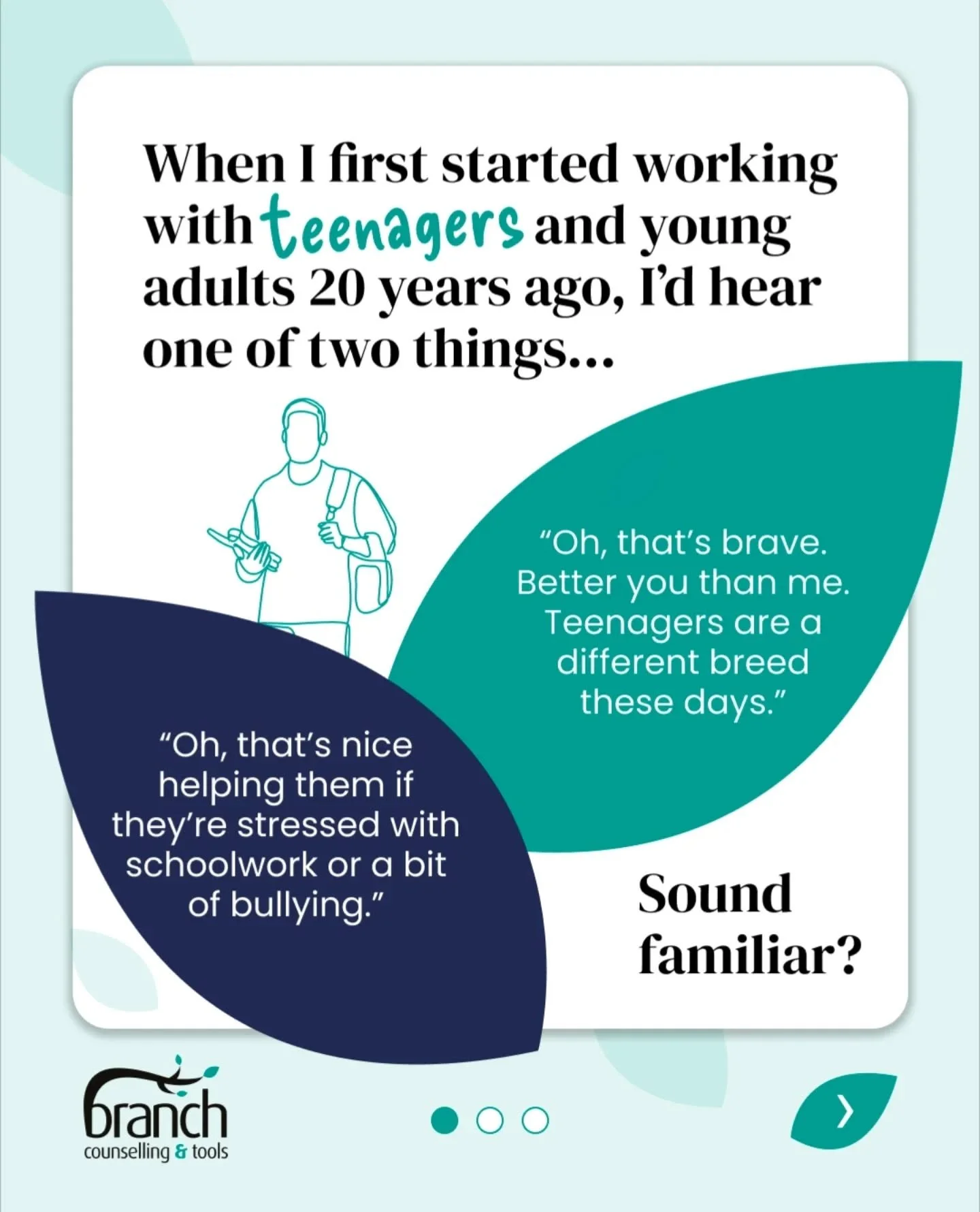 1:1 counselling specialising in teenagers and young adults and families.